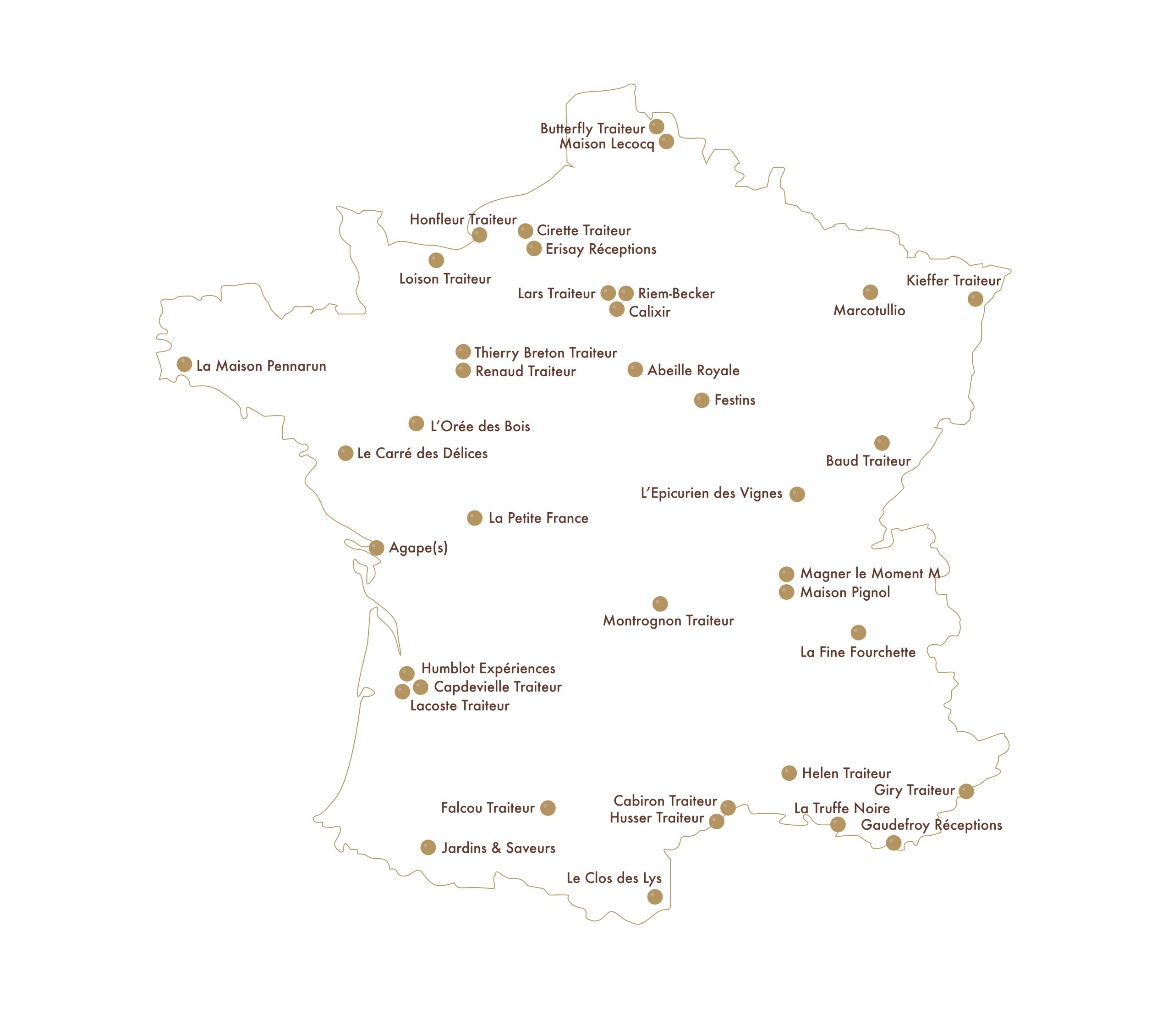 Les Traiteurs de France est le plus grand réseau national de Traiteurs Organisateurs de réception haut de gamme. Fort d’une implantation multiple en région, il rayonne sur tout le territoire pour être au plus proche de ses clients et les accompagner dans leurs besoins réceptifs privés, professionnels, multi-sites. Pour un mariage, une assemblée générale, un rassemblement d’envergure nationale, il y a un Traiteur de France près de chez vous à même de vous accompagner dans votre projet.